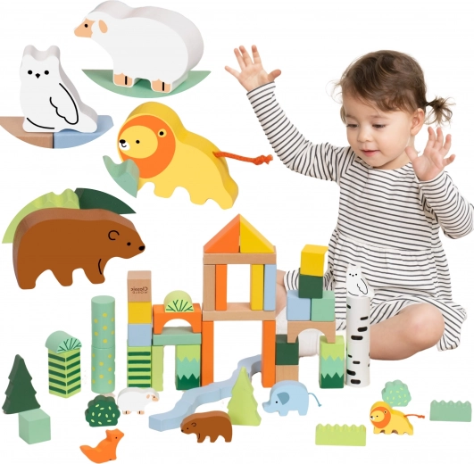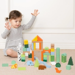 Ce set de blocs en bois comprend 50 pièces colorées de formes variées représentant des arbres, des animaux et des paysages forestiers. La haute qualité de fabrication garantit une durabilité à long terme et la sécurité pendant le jeu. Les blocs sont écologiques et ne contiennent pas de substances nocives.