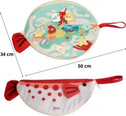 Le tapis de jeu en forme de poisson se replie facilement en un étui zippé pouvant accueillir tous les composants. La fabrication en bois de qualité et des matériaux sûrs garantissent une longue durée de vie et une bonne résistance à un usage quotidien.
