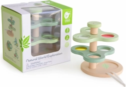Le jouet est fabriqué en bois verni et peint avec des peintures non toxiques, garantissant la sécurité des enfants et minimisant l’empreinte écologique.