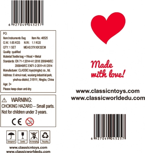 Le set ludique de Classic World est un excellent choix pour développer les compétences musicales des enfants dès l’âge de trois ans. De plus, toutes les pièces sont en bois et peintes avec des couleurs non toxiques.