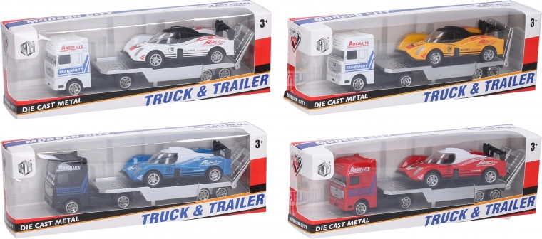 Tracteur routier avec voiture de course est un excellent choix pour les amateurs de courses automobiles. Cette petite voiture en métal à roues libres et aux dimensions compactes dynamise chaque jeu d’enfant.