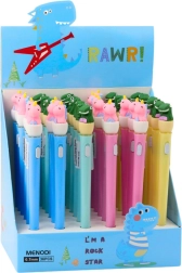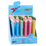 La partie supérieure du stylo est ornée d’une figurine en caoutchouc en forme de dinosaure, qui sert d’élément décoratif et apporte une touche de charme. Grâce au capuchon, la pointe d’écriture est bien protégée contre le dessèchement et un bouton intégré active l’effet d’éclairage LED, qui s’allume à chaque pression.