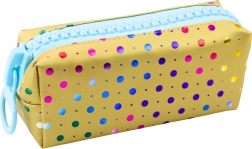 Trousse scolaire à pois colorés avec grande fermeture éclair dorée