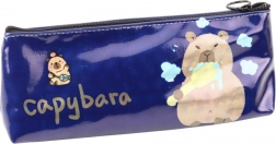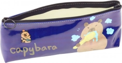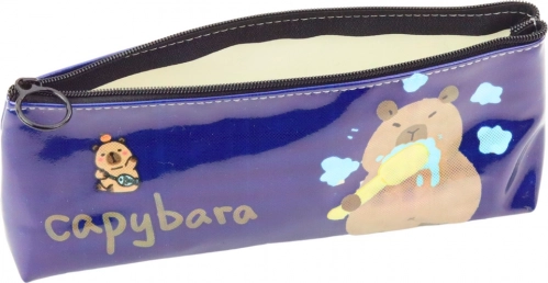 Cette trousse bleu foncé au fini brillant et au motif amusant de capybara se brossant les dents attirera à coup sûr l’attention. L’illustration apporte non seulement le sourire, mais rappelle également l’importance des soins de santé. L’inscription « capybara » accompagnée de nuages pastel crée un look ludique.