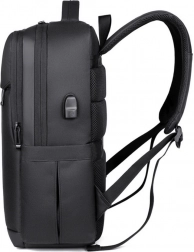 Le sac à dos possède deux compartiments principaux, dont l’un équipé d’un emplacement pour ordinateur portable et d’un port USB intégré permettant de recharger facilement vos appareils mobiles (powerbank non incluse). À l’avant se trouve une poche zippée et, au dos du sac, une autre poche discrète pour des documents ou des objets de valeur.