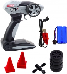 La voiture est équipée de lumières LED (avant, arrière, néon) qui lui confèrent un look exceptionnel, notamment lors des trajets en soirée. La télécommande 2,4 GHz avancée offre un contrôle précis et une portée jusqu’à 25 mètres. La fonction turbo permet d’augmenter instantanément la vitesse, tandis que les pneus supplémentaires et les cônes permettent de créer votre propre piste et de perfectionner vos techniques de conduite.