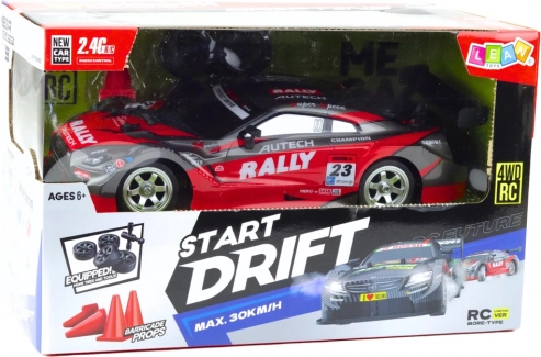 Voiture RC de course pour drift, rouge et noire, 30 km/h, 1:16