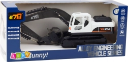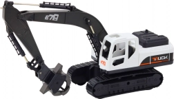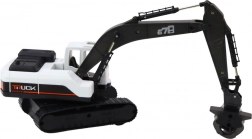 La pelle sur chenilles est équipée d'un grappin à la place d'un godet traditionnel, possède un bras articulé avec plusieurs points de mouvement et une rotation de la base à 360°. Le châssis à chenilles assure une stabilité et une robustesse similaires aux véritables engins de construction. Le modèle dans une combinaison de couleurs modernes noir-blanc-gris s'intègre parfaitement dans toute collection de jouets de construction.