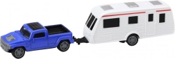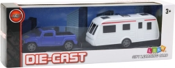 Superbe ensemble comprenant une petite voiture bleue avec caravane, parfait pour tout enfant qui aime les voitures et l'imagination. Grâce à la technologie de moulage sous pression, la voiture a un corps métallique résistant avec des détails en plastique.<p>