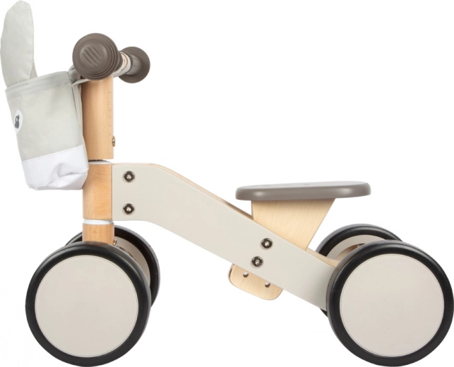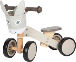 La draisienne est dotée d’une selle réglable (22-25 cm) qui s’adapte facilement à la croissance de votre enfant. Un sac amovible et pratique sur le guidon, au design d’ânon, offre suffisamment de place pour une bouteille d’eau ou un doudou. Les roues arrière sont suffisamment proches l’une de l’autre, créant ainsi un espace propice à une poussée confortable avec les pieds.