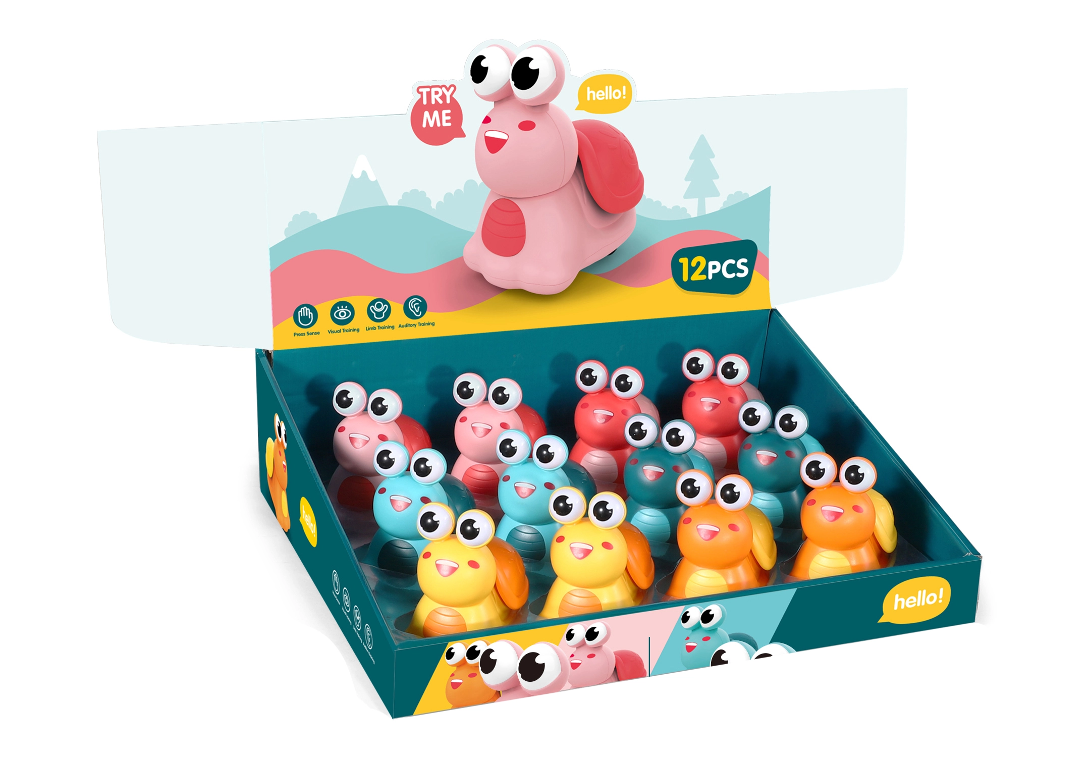Cet escargot à remonter est proposé en trois variantes – jaune, rose et bleu – permettant de choisir selon les goûts personnels. Grâce à ses dimensions compactes, il est idéal pour jouer à la maison comme en voyage.
