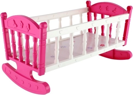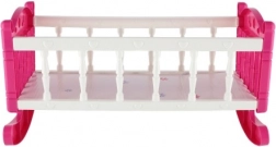 Le berceau rose et blanc avec des décorations délicates est fabriqué en plastique résistant, permettant de basculer et bercer la poupée. Idéal pour développer l'imagination durant le jeu.