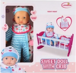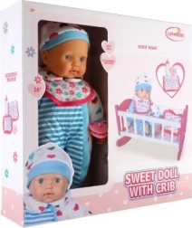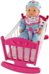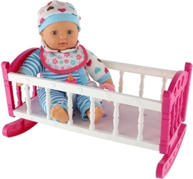 Aujourd'hui, nous vous apportons une poupée unique avec berceau, qui sera un excellent ajout au monde de jeu de chaque enfant. Le corps souple de la poupée permet une manipulation facile, ajoutant du réalisme aux mouvements lors du jeu. Le berceau rose avec des rayures blanches et un motif de cœur est idéal pour bercer la poupée, tandis que des accessoires comme le biberon et la sucette offrent une expérience réaliste de soin d'un bébé.