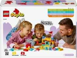 Ce jeu et set de construction LEGO DUPLO 2-en-1 malin offre un apprentissage ludique. Construisez ensemble un château coloré, faites tourner l’aiguille et déplacez les figurines d’animaux sur le plateau de jeu. Selon la couleur sur laquelle vous tombez, ajoutez au château la brique correspondante – l’esprit d’équipe gagne lorsque tous les personnages atteignent le château !
