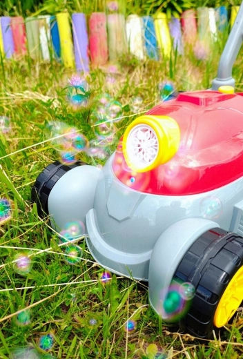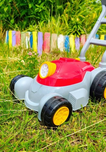 Une tondeuse à bulles amusante qui transforme n’importe quel jardin en terrain de jeu magique. Après avoir connecté la solution et appuyé sur le bouton, elle produit un flux de bulles magiques; une seconde pression active aussi les effets lumineux et sonores. Grâce à sa poignée en plastique robuste, elle est facile à manœuvrer et idéale pour les enfants dès 3 ans.