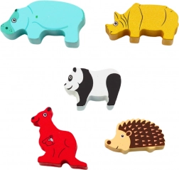 L'ensemble comprend des figurines en bois, peintes à la main, représentant des animaux exotiques et de la forêt, tels que l'éléphant, le panda, le kangourou ou le hérisson. Tous les éléments sont fabriqués à partir de bois naturel et peints avec des peintures non toxiques, garantissant un jeu sûr même pour les plus petits. Les bords lisses éliminent les risques d'échardes et de blessures.