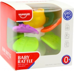La partie centrale rotative de la fleur incite l’enfant à l’activité et au renforcement des mains. Les pétales colorés sont fabriqués dans un matériau souple et élastique, adapté à la mastication – idéal pendant la période de poussée dentaire. Enrichie de petites billes à l’intérieur de la fleur, qui tintent doucement lors des mouvements, elle stimule à la fois l’ouïe et la vue de l’enfant.