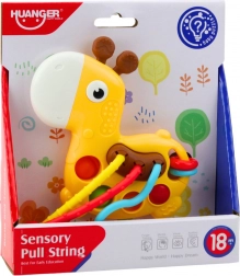 Cette girafe est équipée de cordons multicolores aux textures variées que les enfants peuvent tirer à travers des ouvertures, entraînant ainsi leur précision et la dextérité des doigts. Elle comprend également des éléments rotatifs et à cliquer, rendant le jouet encore plus amusant et captivant.