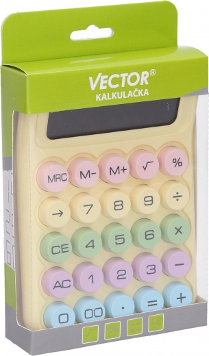 Calculatrice Vector avec touches extra larges facilitant le travail sur des calculs plus complexes grâce à son ergonomie et à son écran lisible. Idéale pour une utilisation quotidienne au bureau ou à la maison.