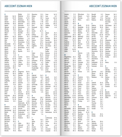 - Calendrier slovaque avec prénoms, fêtes et jours commémoratifs,