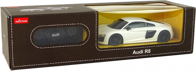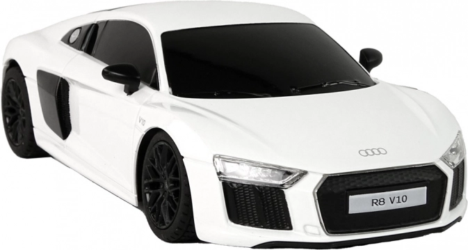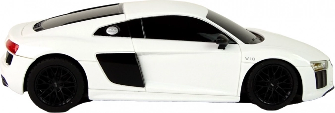 Le modèle de voiture Audi R8 est doté d'une peinture blanche stylée qui confère au véhicule une apparence exceptionnelle et exclusive. Les vitres teintées ajoutent au mystère et à l'authenticité du véhicule.