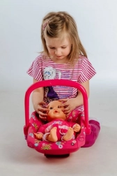 Conçu pour des heures infinies de plaisir, ce porte-bébé pour poupées combine praticité et sûreté. Les enfants peuvent transporter confortablement leurs poupées préférées grâce à la poignée en plastique solide et au siège rembourré et doux.