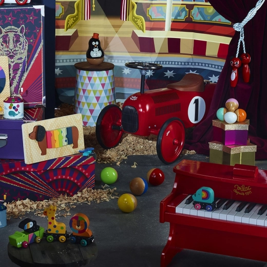 Piano pour enfants en bois rouge VILAC avec 18 touches et 10 pages de partitions. Fabrication de qualité, développe le rythme et la créativité. Adapté dès 3 ans.