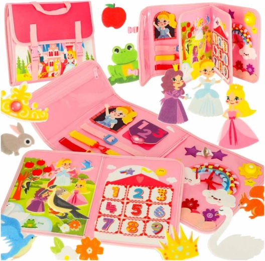 Ce sac à dos sensoriel Montessori rose est le compagnon idéal pour tout enfant curieux. Sa construction en forme de valise offre divers éléments interactifs qui développent les compétences motrices et augmentent l'intérêt pour l'apprentissage. Six pages différentes offrent des possibilités de jeu et d'interaction :