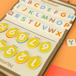 Possibilités éducatives: À l'intérieur de la valise, vous trouverez des pages en feutre pour coudre, des cartes éducatives avec des lettres et des chiffres, et un tableau effaçable pour une activité créative.