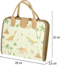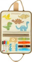 La valise contient un tableau effaçable et des composants éducatifs grâce auxquels les enfants peuvent développer leurs connaissances à travers le jeu. Des figurines en feutrine de dinosaures sont également disponibles pour un jeu créatif.