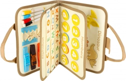 Valise sensorielle Montessori avec dinosaures combine la joie de la découverte avec l'éducation. Avec les lacets, les fermetures éclair, les boutons et d'autres éléments, les enfants peuvent pratiquer leurs compétences de manière ludique. Cette valise compacte et visuellement attrayante est idéale pour une utilisation à la maison ou en voyage.
