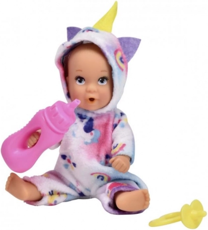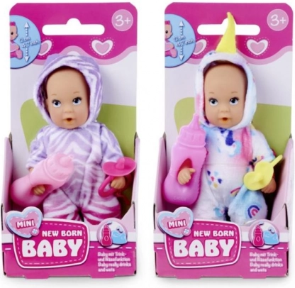 Poupée New Born Baby MINI est un jouet amusant et interactif que votre enfant va adorer. Cette adorable poupée non seulement boit et fait pipi, mais son pyjama est disponible en deux motifs : licorne et jungle.