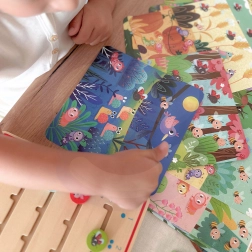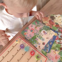 Le jeu est destiné aux enfants à partir de 3 ans et comprend une tablette en bois pour indiquer les chiffres ainsi que 20 cartes sur le thème de la forêt pour compter les animaux, avec les réponses au verso. Les enfants peuvent jouer en autonomie, s’entraîner à compter et enrichir leur vocabulaire en tchèque et en anglais.