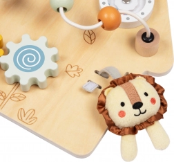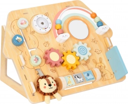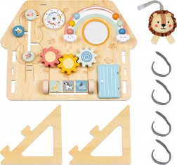 Ce tableau sensoriel « busy board » en forme de petite maison séduit les enfants grâce à des éléments à tourner, faire coulisser, cliquer et observer. En jouant, les enfants entraînent la prise en main, la coordination des deux mains et la patience, tandis que les détails colorés encouragent la reconnaissance des formes et des couleurs. La fabrication robuste en bois et les bords lisses garantissent un jeu sûr au quotidien.