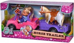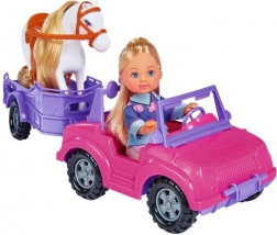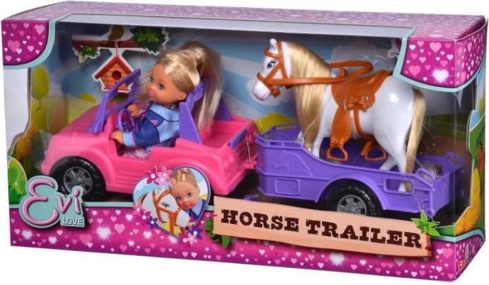 Ce set apporte aux enfants tout le nécessaire pour leurs aventures équestres. La poupée Evi Love conduit un cabriolet rose stylé, qui tracte une remorque violette pour transporter le cheval confortablement. Grâce aux roues mobiles et à la remorque détachable, le jeu est fluide et amusant à la maison comme en voyage.
