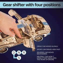 Endurance Racer de Ugears est un coupé sportif à deux portes conçu pour les passionnés d'automobile. Le modèle se vante d'éléments de course réalistes, comme un levier de vitesses avec des modes avant, arrière et sport pour une accélération supplémentaire. Les pneus en silicone assurent une adhérence et une stabilité extra.