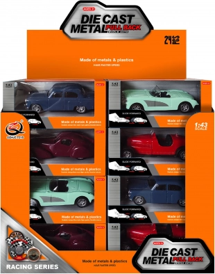 Profitez de la nostalgie avec notre voiture ancienne à rétrofriction. Ce modèle est fabriqué en métal et est proposé en quatre variantes de couleur.