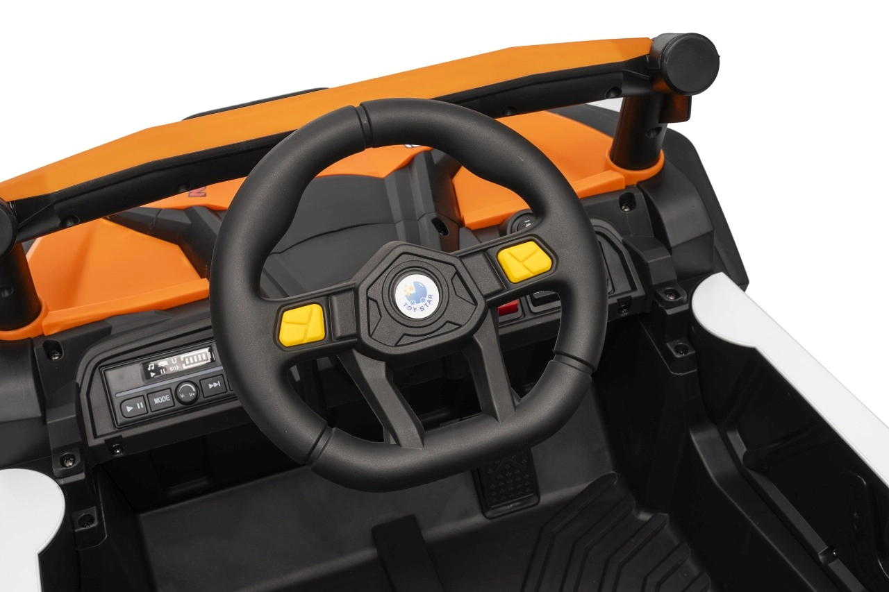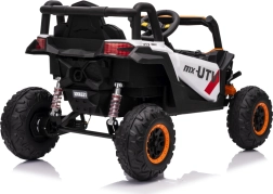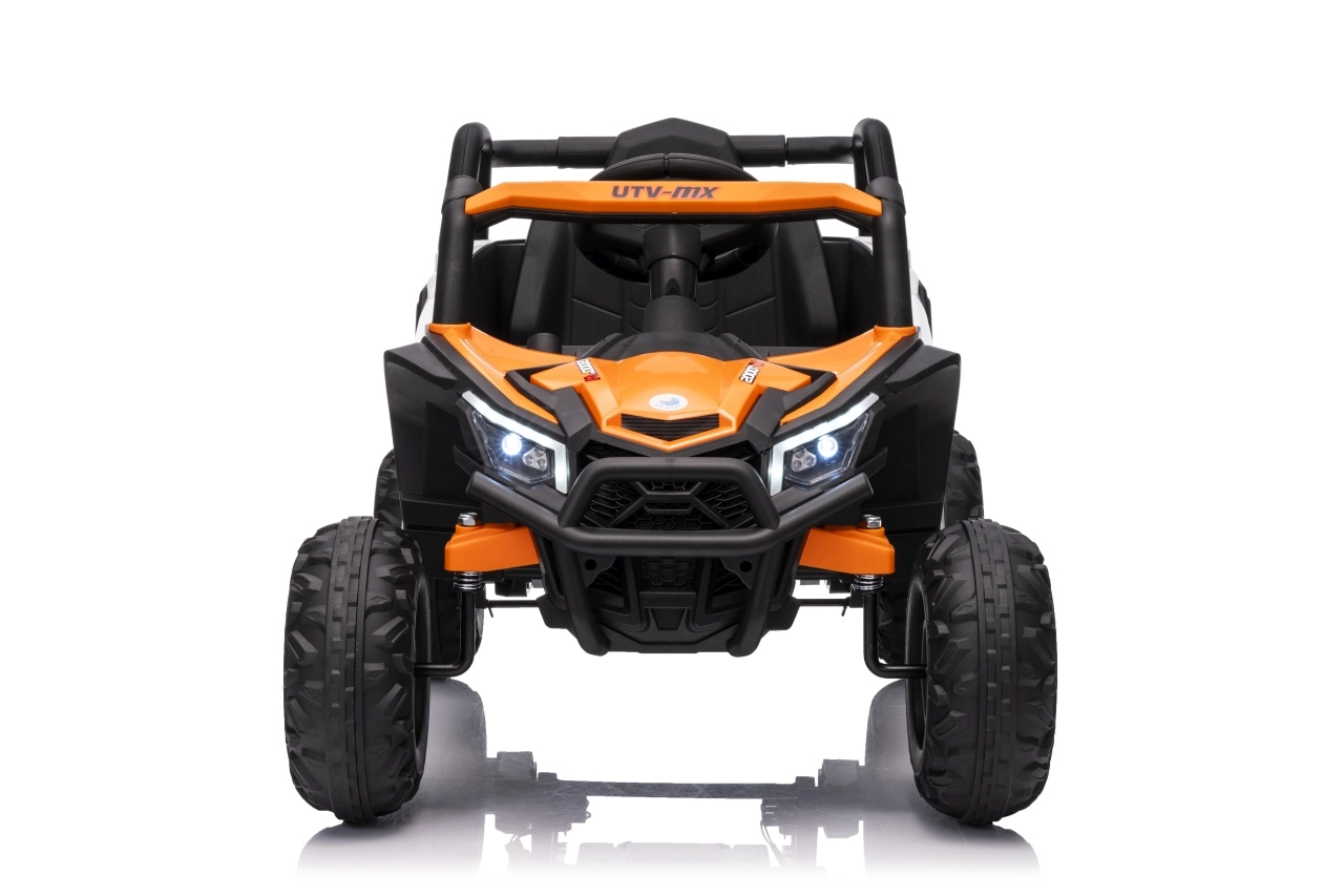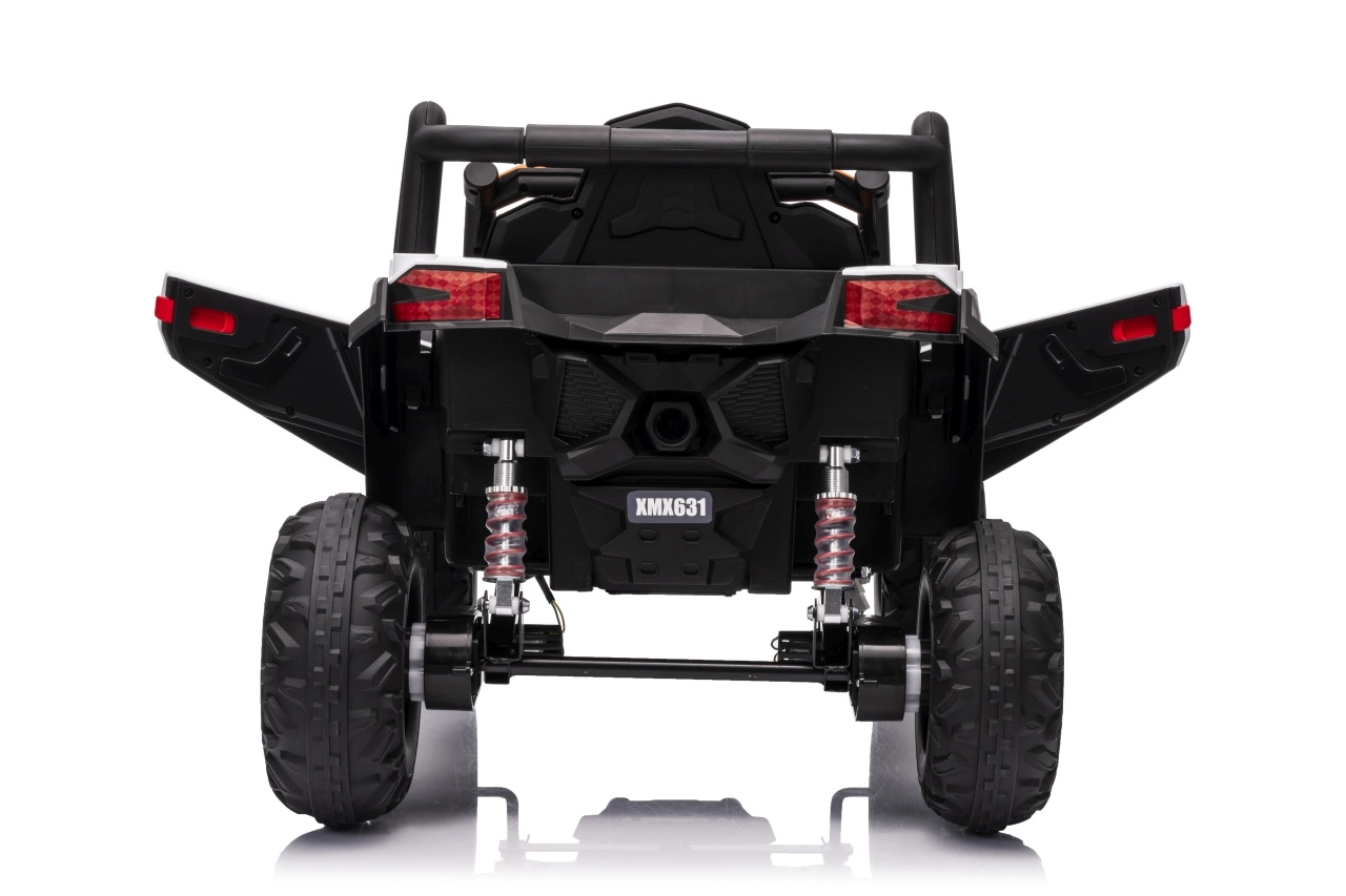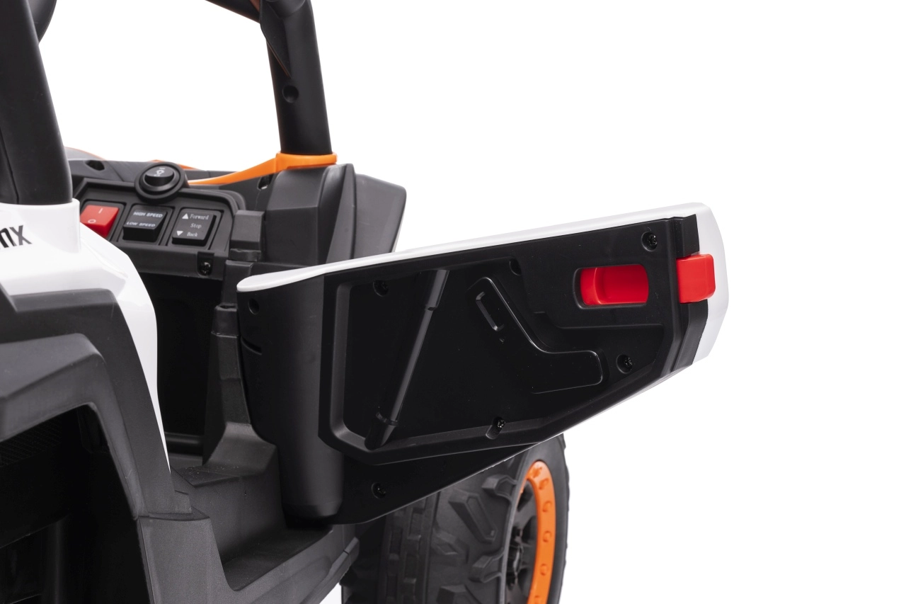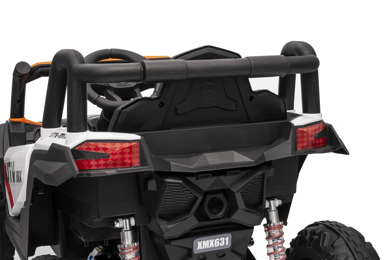 Le véhicule électrique Buggy Madman UTV-MX est équipé de quatre puissants moteurs de 35 W chacun et est alimenté par une batterie 12V10Ah. Le contrôle est assuré par une télécommande 2,4 GHz à très haute stabilité de fréquence, proposant le choix entre trois vitesses et permettant d’activer le bouton de sécurité Stop.