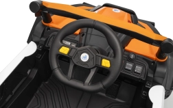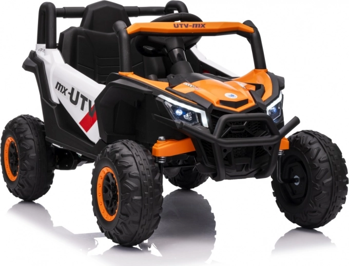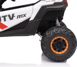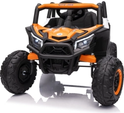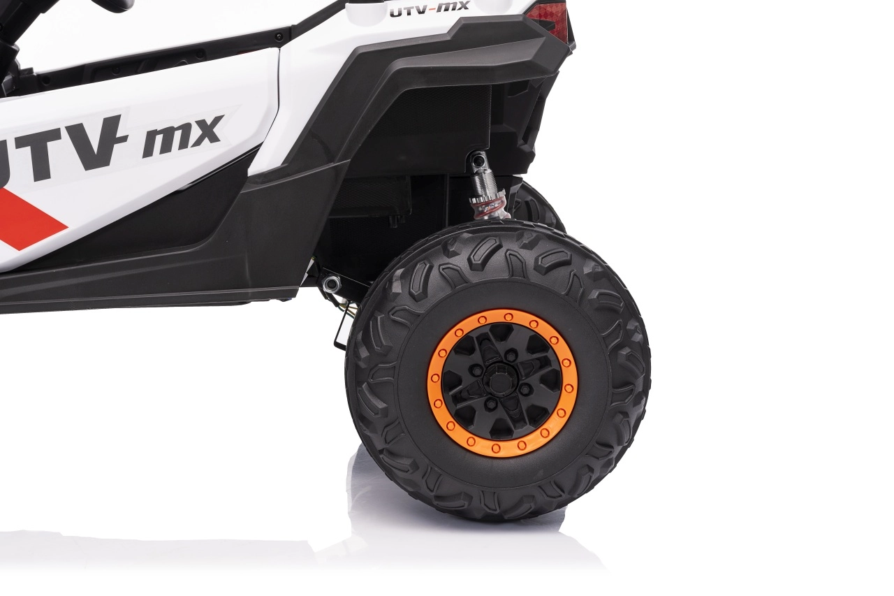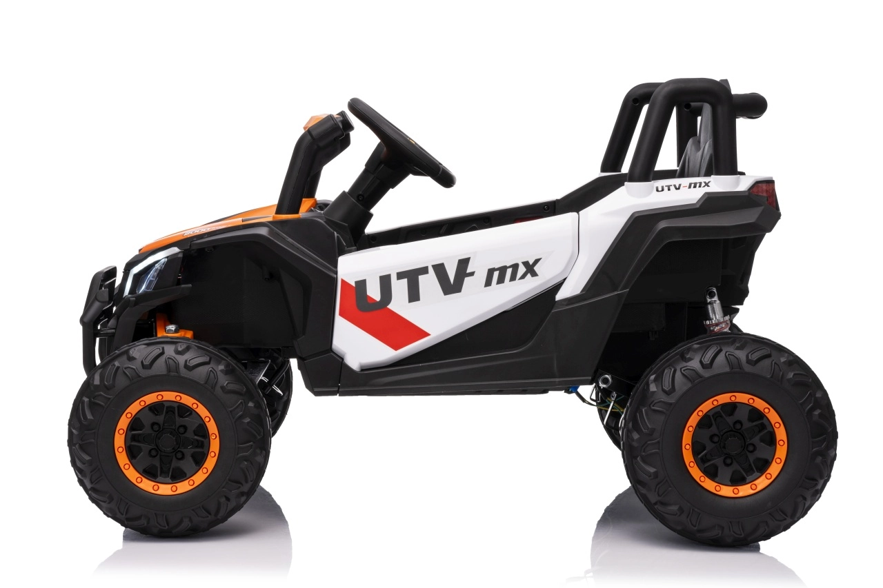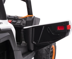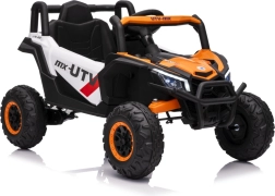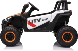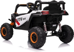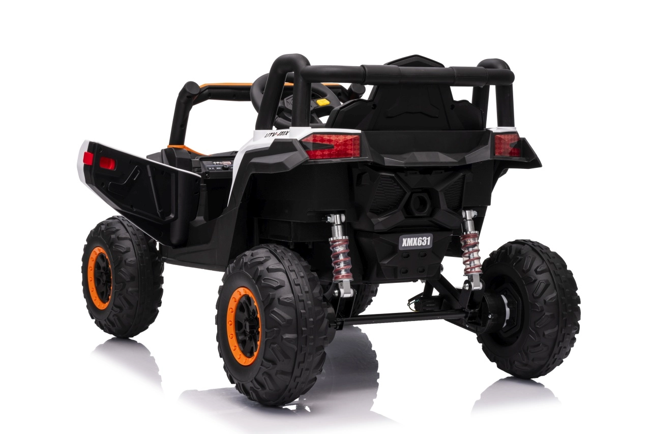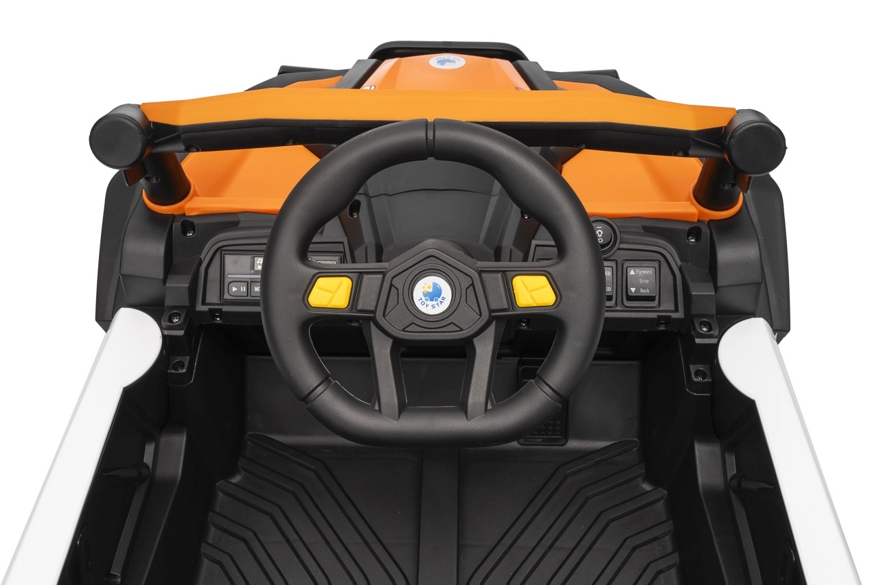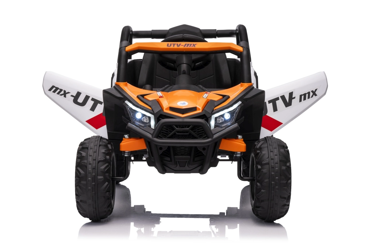 Le véhicule électrique Buggy Madman UTV-MX est équipé de quatre puissants moteurs de 35 W chacun et est alimenté par une batterie 12V10Ah. Le contrôle est assuré par une télécommande 2,4 GHz à très haute stabilité de fréquence, proposant le choix entre trois vitesses et permettant d’activer le bouton de sécurité Stop.