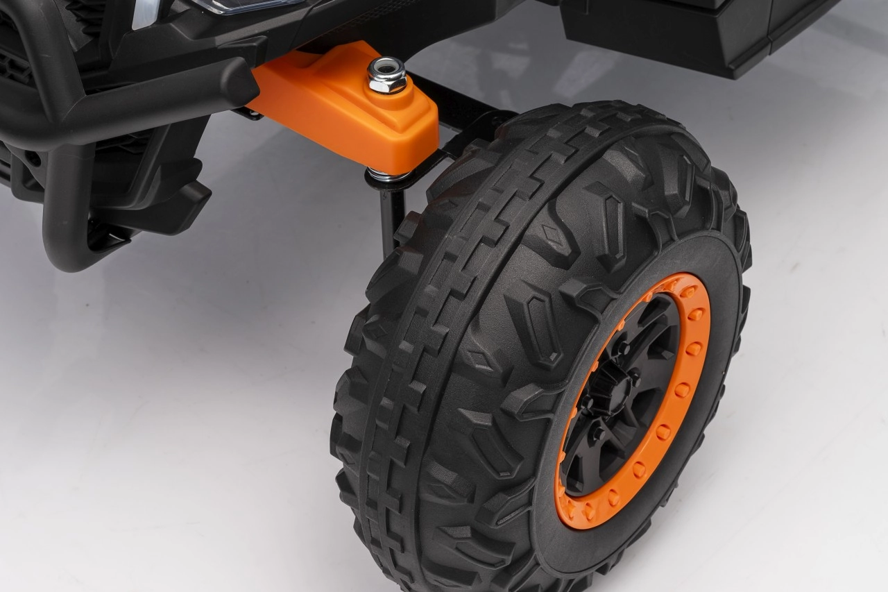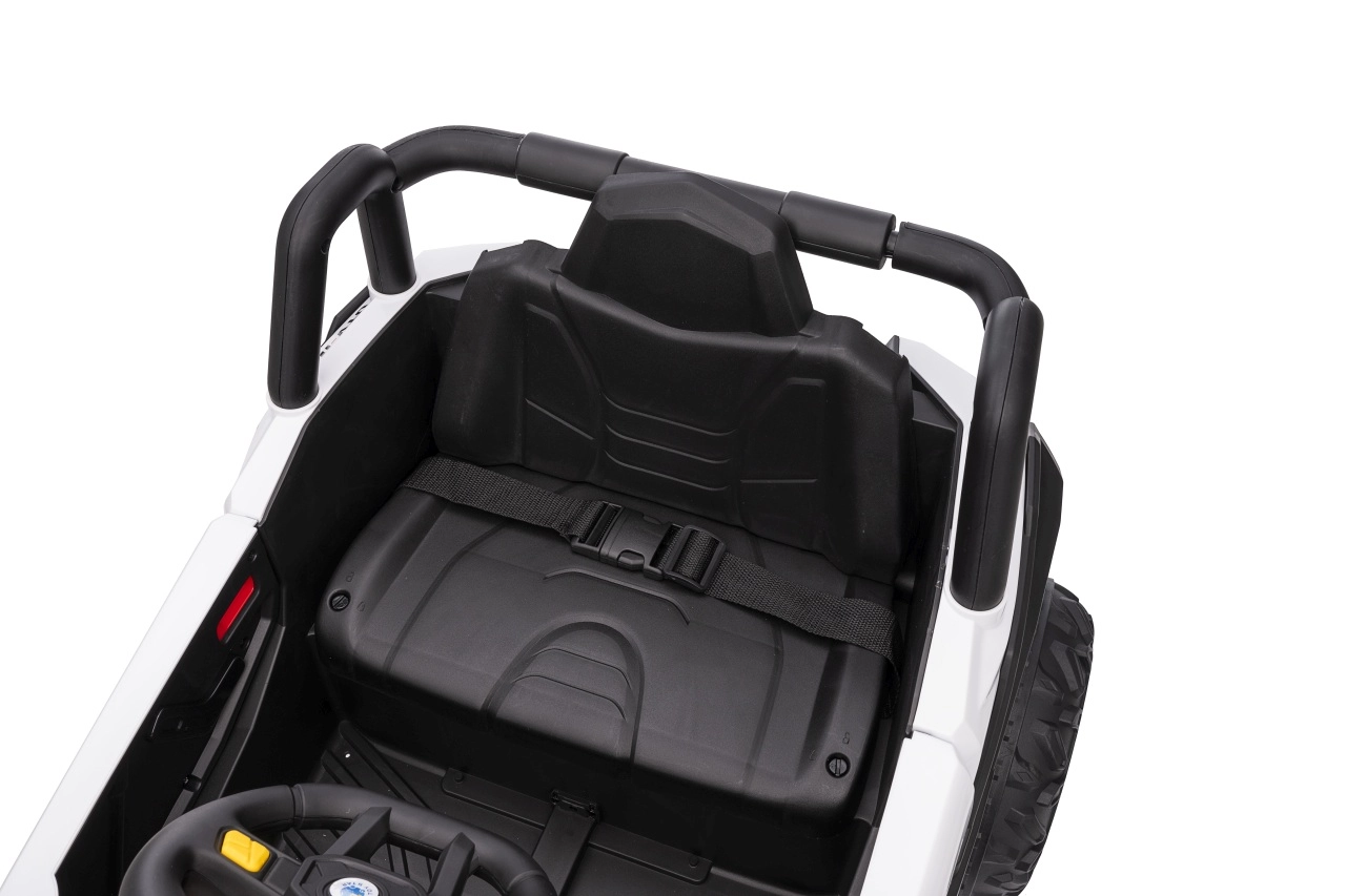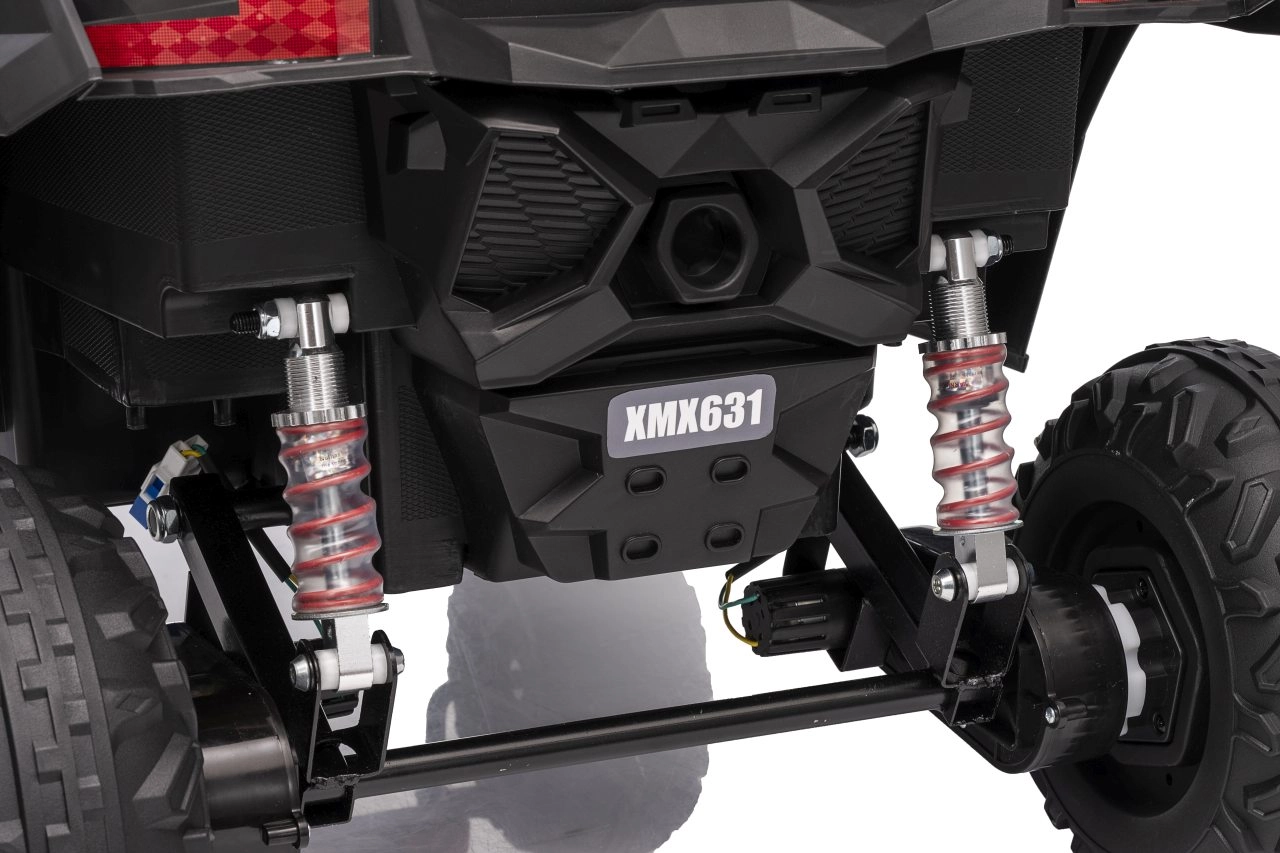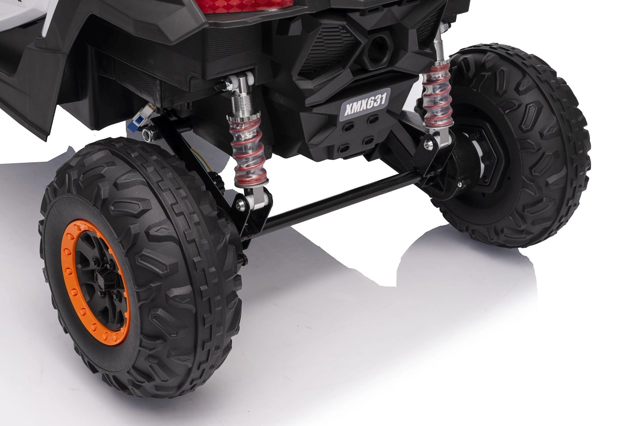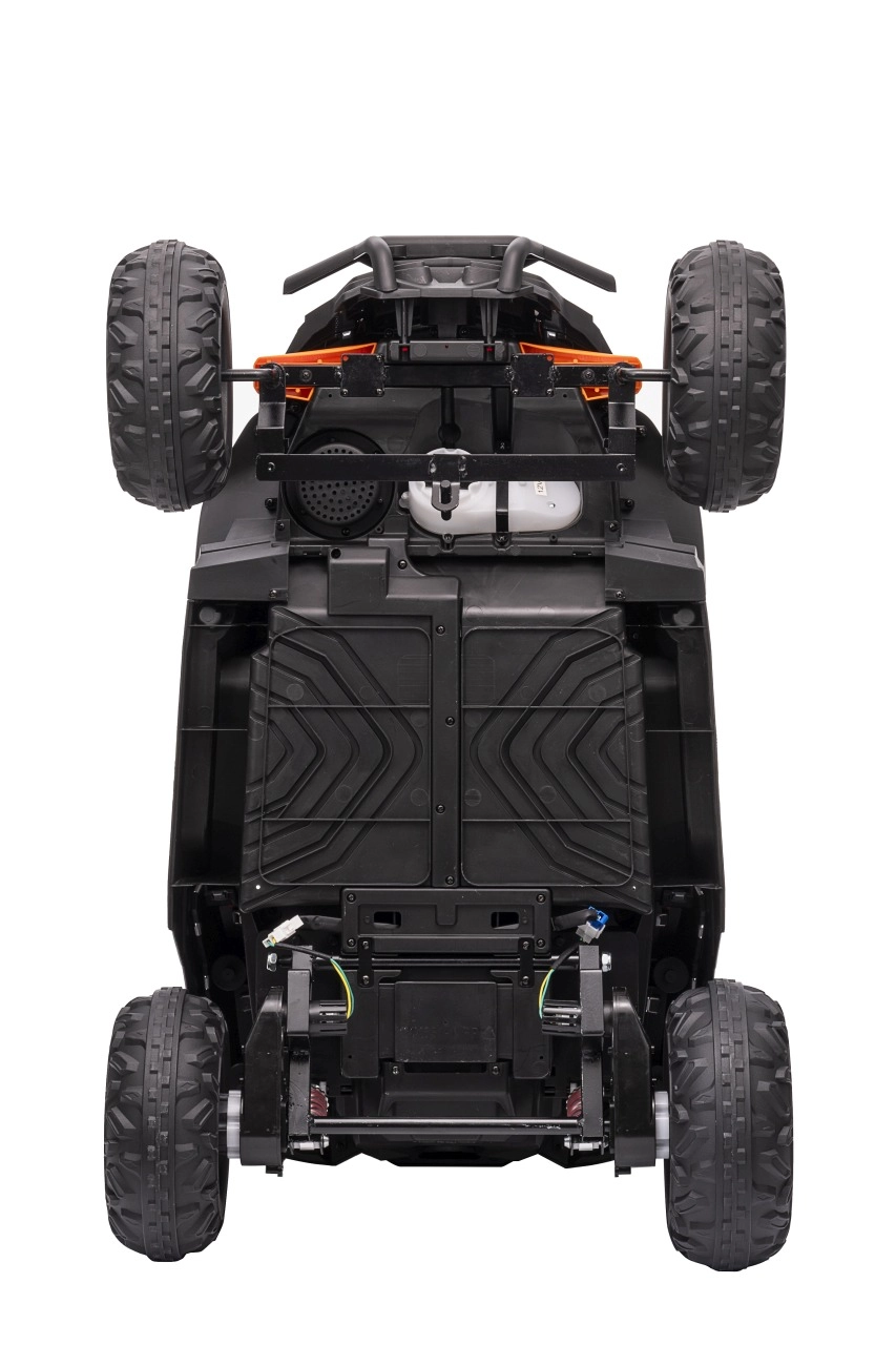 Le véhicule est doté de roues EVA de qualité pour une conduite fluide et garantit le confort grâce à une suspension avant et arrière. L’éclairage LED ajoute également un look fonctionnel et stylé au véhicule. Tout cet équipement est intégré dans un véhicule aux dimensions de 95 cm (longueur), 61 cm (largeur) et 57 cm (hauteur).