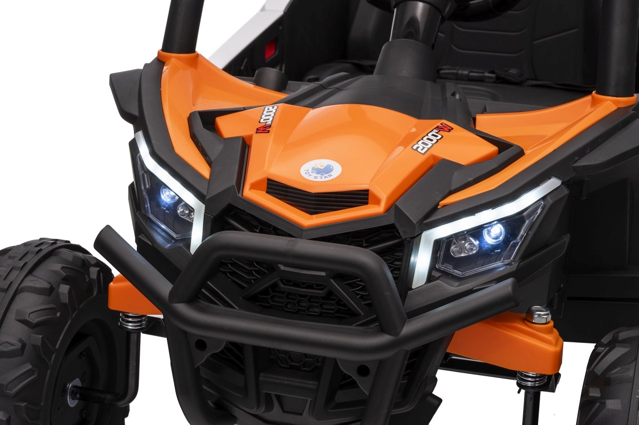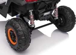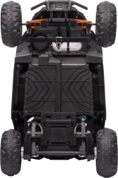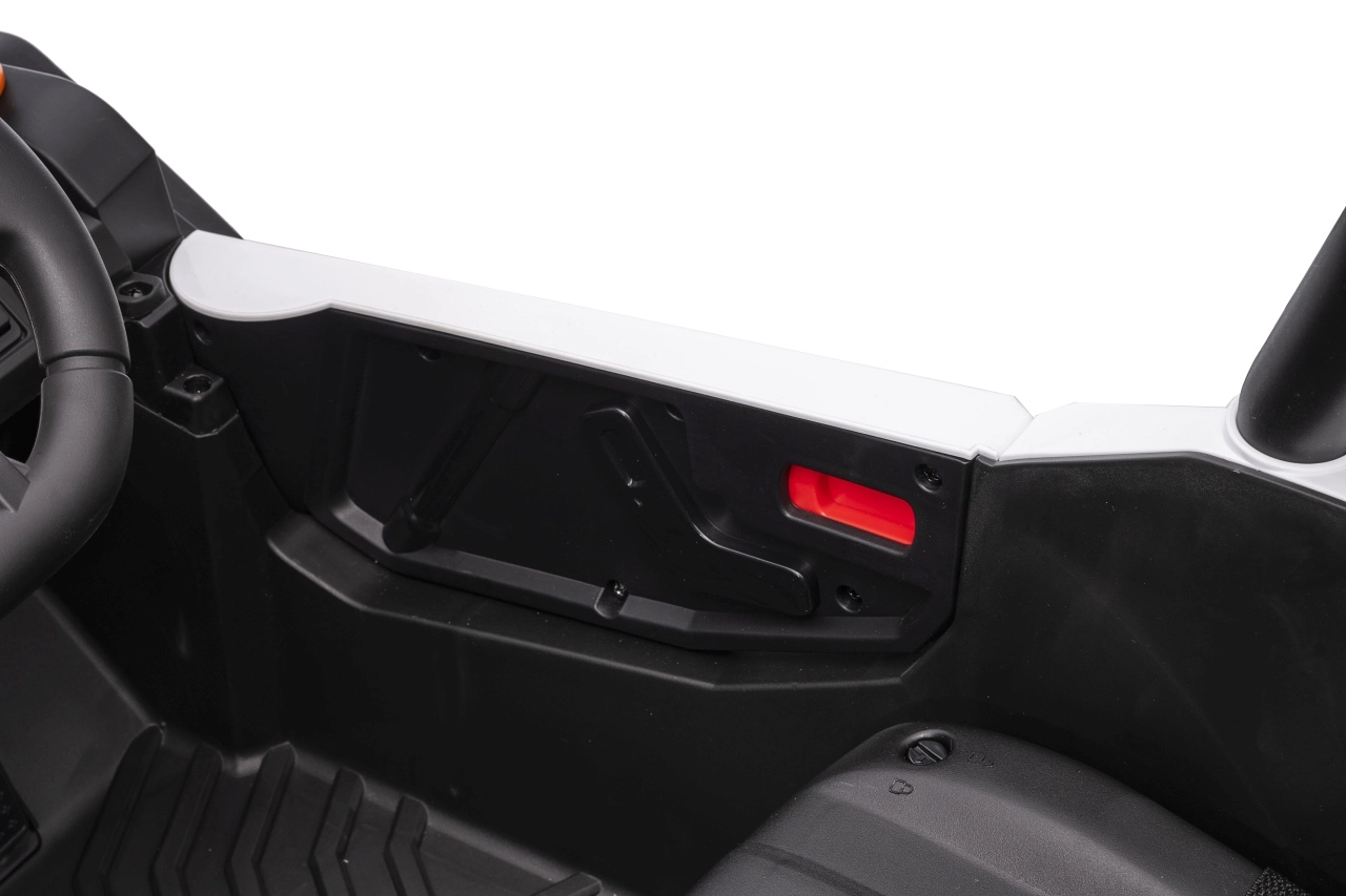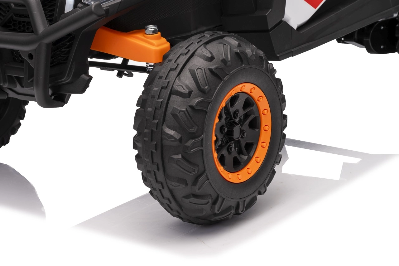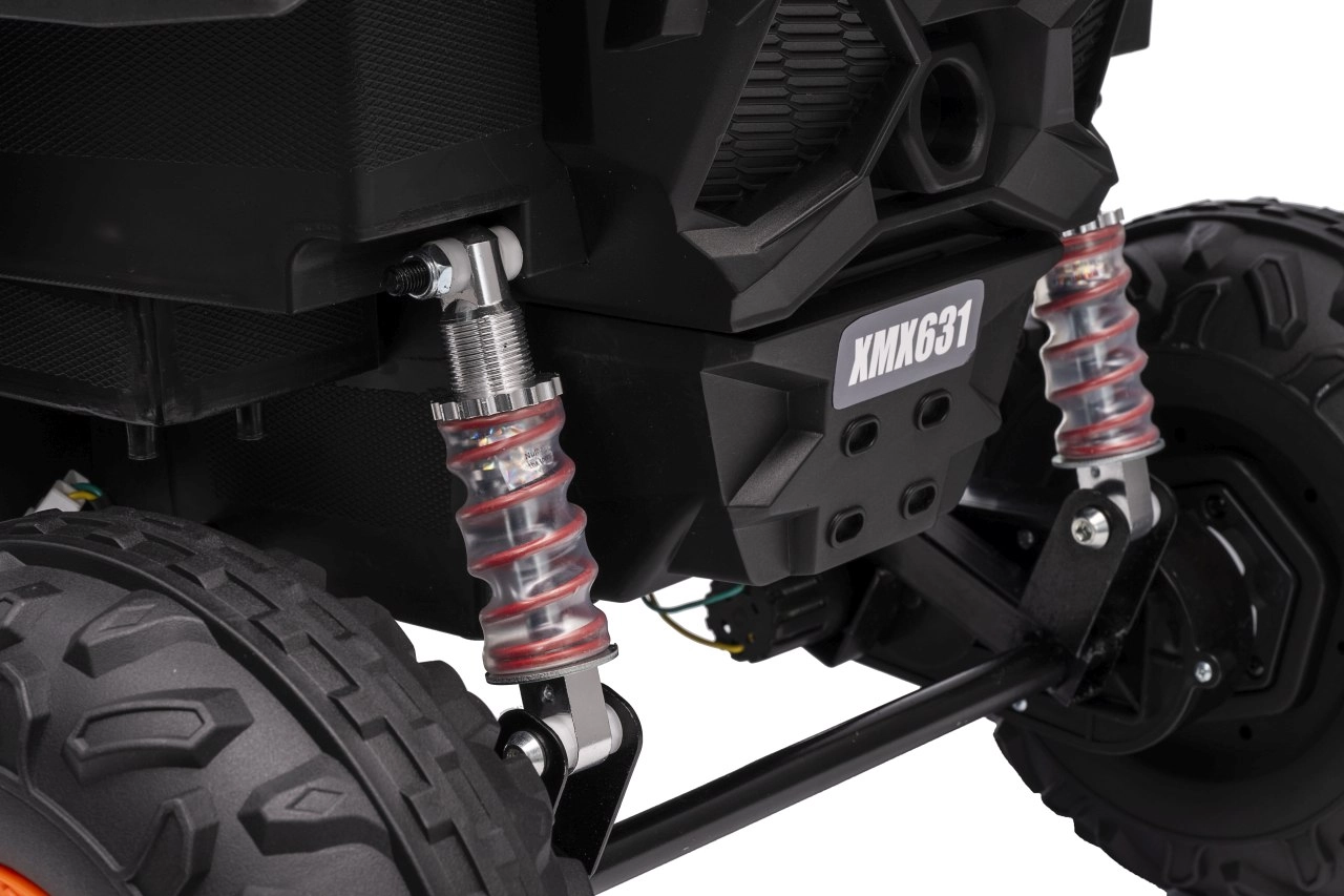 Le véhicule est doté de roues EVA de qualité pour une conduite fluide et garantit le confort grâce à une suspension avant et arrière. L’éclairage LED ajoute également un look fonctionnel et stylé au véhicule. Tout cet équipement est intégré dans un véhicule aux dimensions de 95 cm (longueur), 61 cm (largeur) et 57 cm (hauteur).