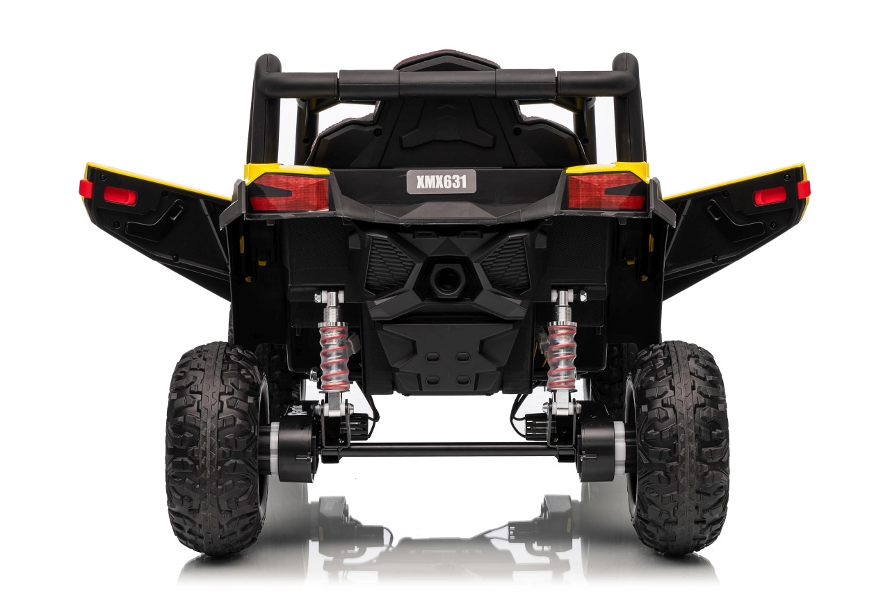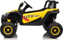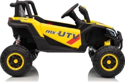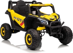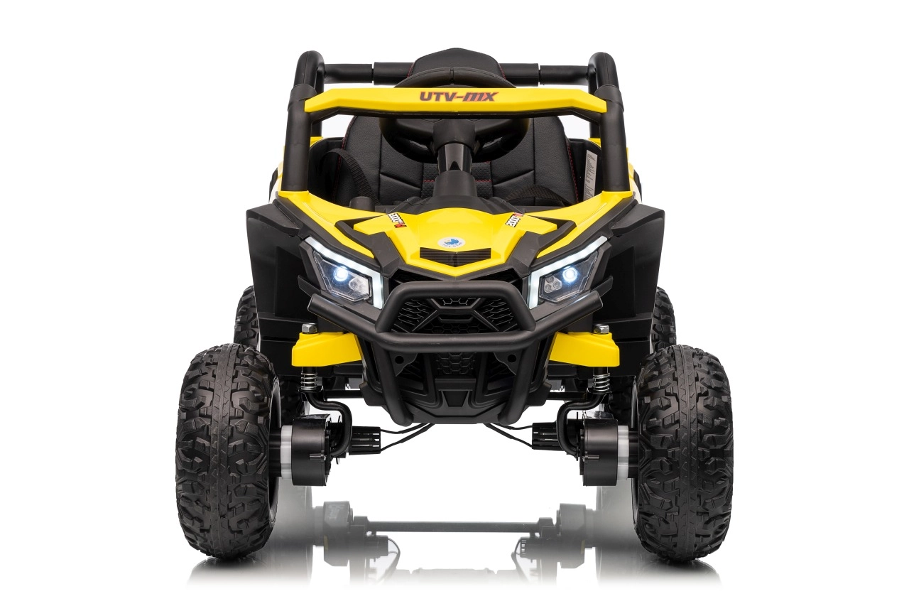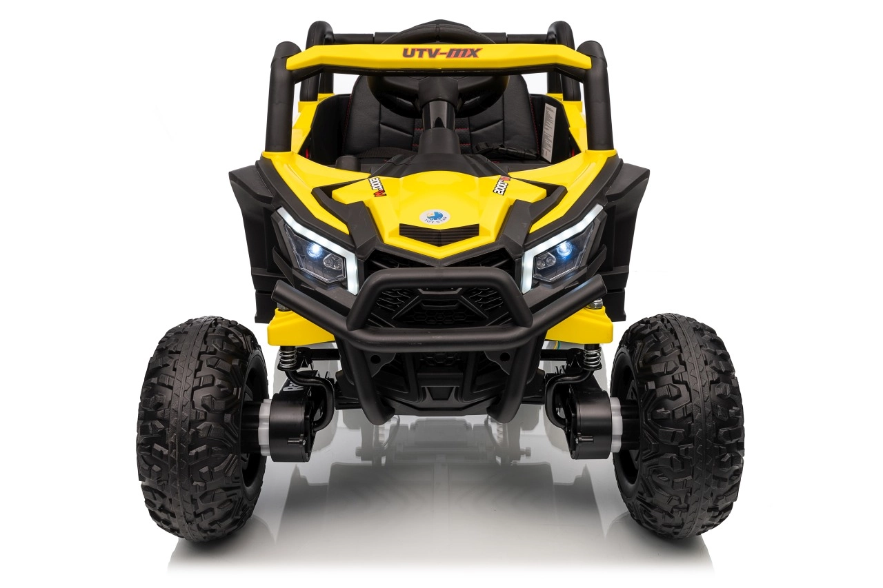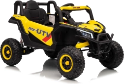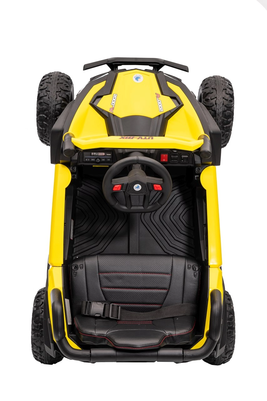 Ce buggy jaune Madman UTV-MX est parfait pour la conduite des enfants grâce à un moteur de 4x35W et une batterie 12V10Ah offrant une longue autonomie. Le contrôle est facile avec la télécommande 2,4 GHz et trois niveaux de vitesse.