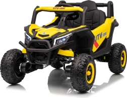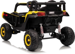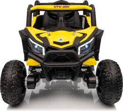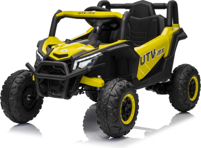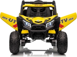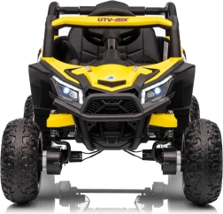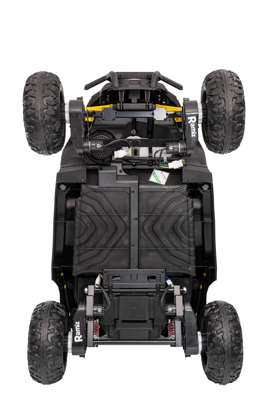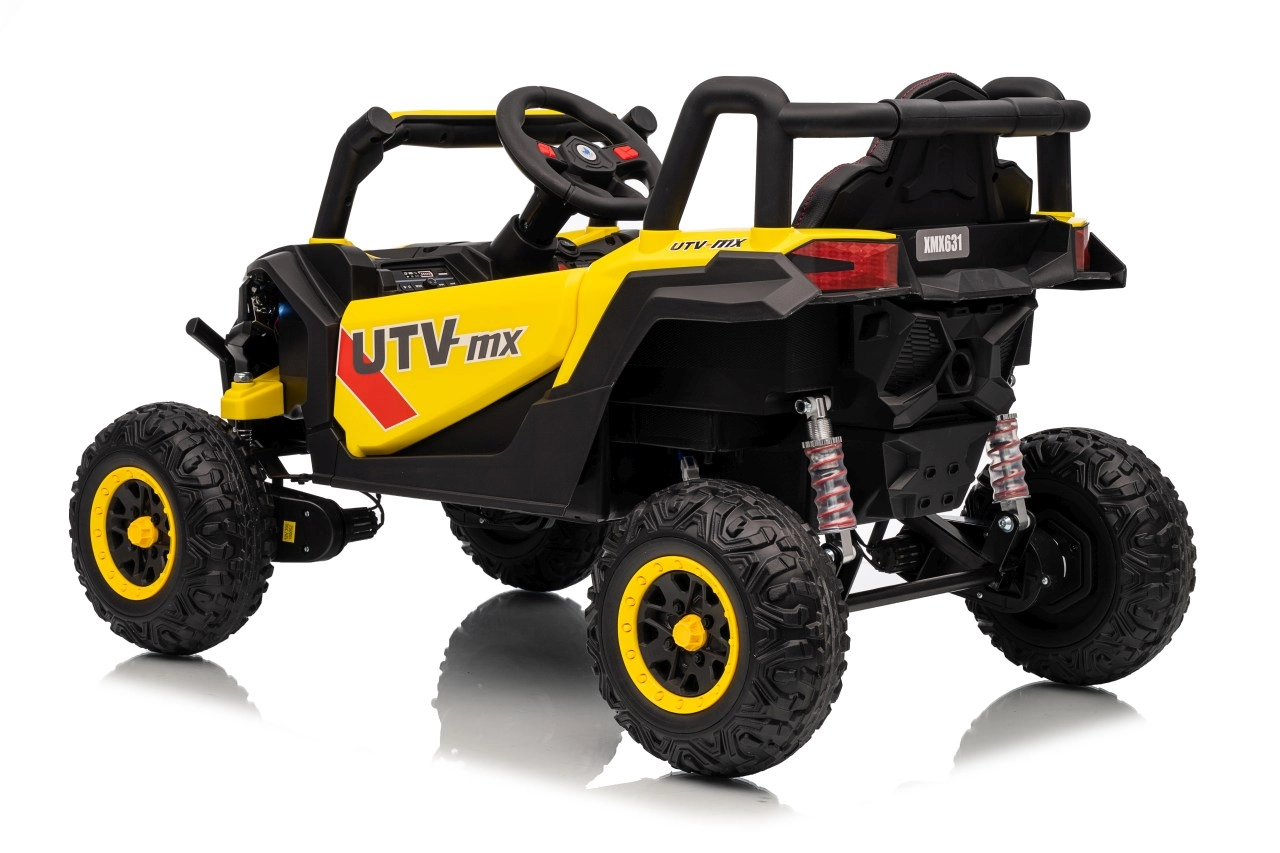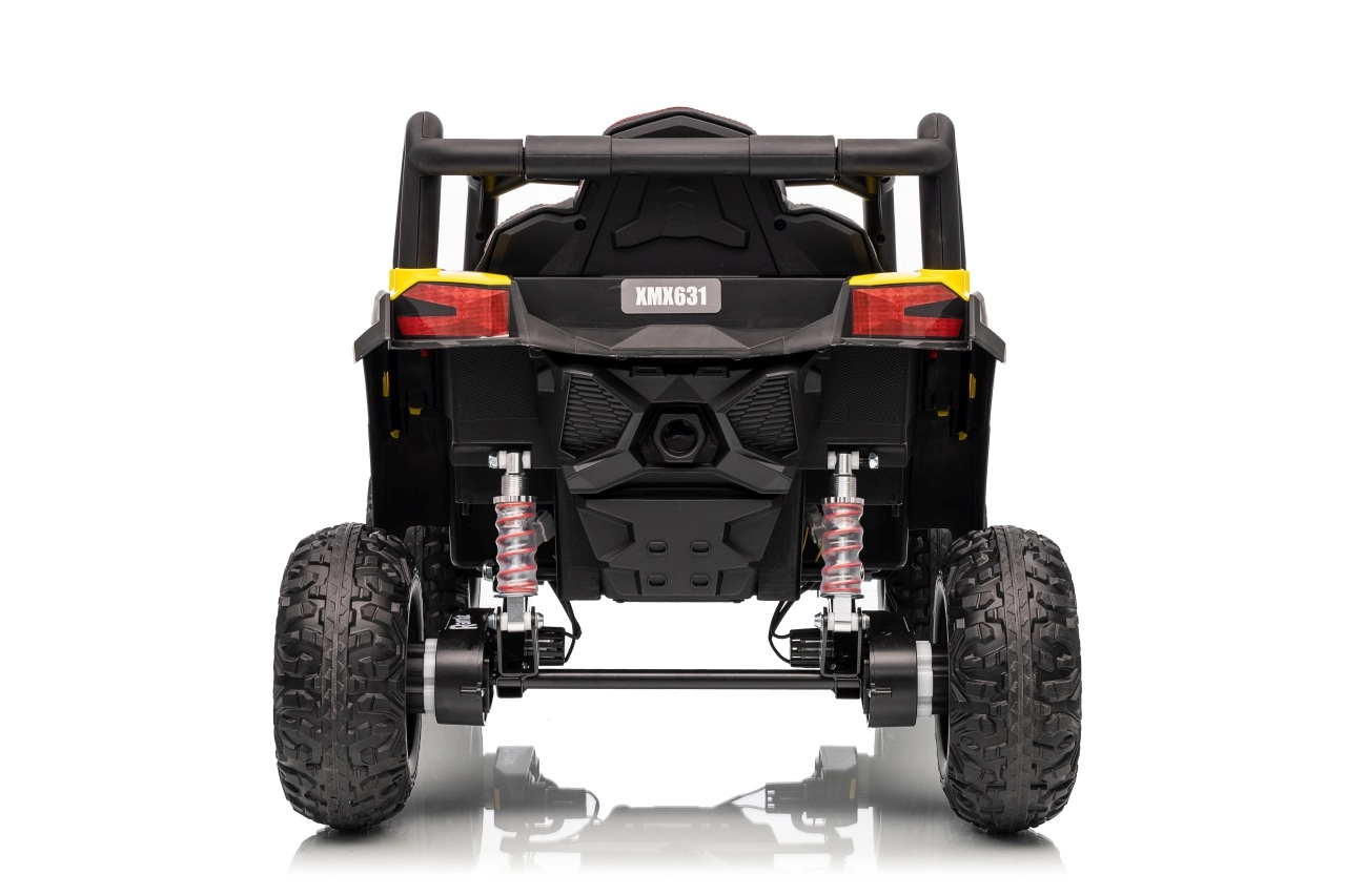 Ce buggy jaune Madman UTV-MX est parfait pour la conduite des enfants grâce à un moteur de 4x35W et une batterie 12V10Ah offrant une longue autonomie. Le contrôle est facile avec la télécommande 2,4 GHz et trois niveaux de vitesse.