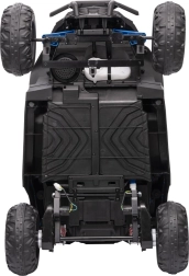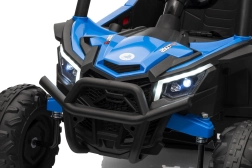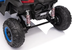 La sécurité est une priorité : le véhicule dispose de ceintures de sécurité et d’une télécommande 2,4 GHz, permettant le contrôle de la vitesse et un arrêt rapide en cas de danger. Pour un confort maximal, il est doté de roues en mousse EVA et d’amortisseurs réglables à l’avant et à l’arrière, assurant une conduite fluide même sur terrain irrégulier.
