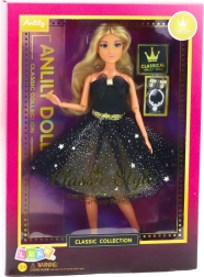 Éblouissante, la poupée Anlily en robe noire est un complément parfait à toute collection de jeux pour enfants. Elle séduit non seulement par sa robe avec une ceinture dorée élégante, mais aussi par chaque détail, comme le brocart scintillant. Les longs cheveux blonds sont idéaux pour coiffer et styliser, développant ainsi la créativité et le sens esthétique de l’enfant.