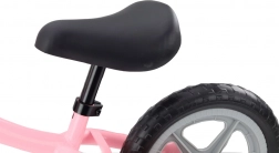Sa conception avec une tube de cadre en acier rigide et des roues EVA 12” silencieuses garantit une conduite fluide et confortable sans risque de crevaison. La hauteur réglable de la selle (33,5–48 cm) et du guidon (51–56 cm) permet d’adapter la draisine à la taille actuelle de l’enfant. La largeur de guidon de 41 cm et la courte portée jusqu’aux poignées favorisent un contrôle assuré.