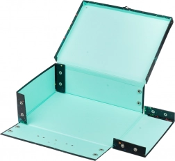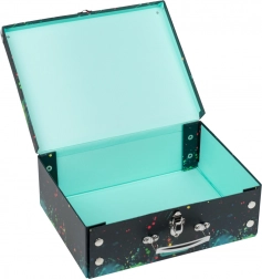 Valise pliante pratique idéale pour l'éducation artistique, les jouets ou les bibelots. Grâce aux boutons-pression, la valise peut être facilement pliée et dépliée. Port confortable grâce à la poignée en métal.