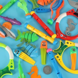 Sous l'eau, les enfants peuvent rencontrer des poissons, des hippocampes et des poulpes qui les aident à développer leurs compétences et leur motricité. L'ensemble comprend également des tubes de plongée qui permettent aux enfants de récupérer facilement les jouets dans l'eau. L'ensemble est adapté non seulement pour le jeu ordinaire, mais aussi pour l'intégration sensorielle et le développement de la motricité fine.