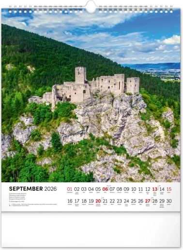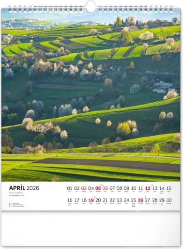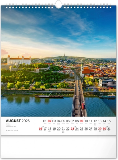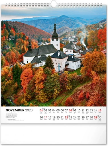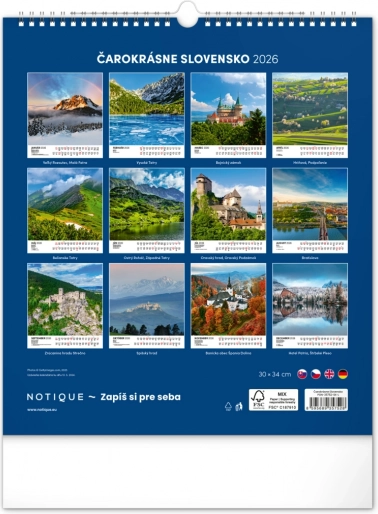Découvrez le patrimoine naturel et culturel de la Slovaquie dans notre calendrier mural pour l’année 2026. Le format 30 x 34 cm offre de magnifiques photographies de la Slovaquie et un calendarium slovaque clair avec les jours fériés et les dimanches mis en évidence.