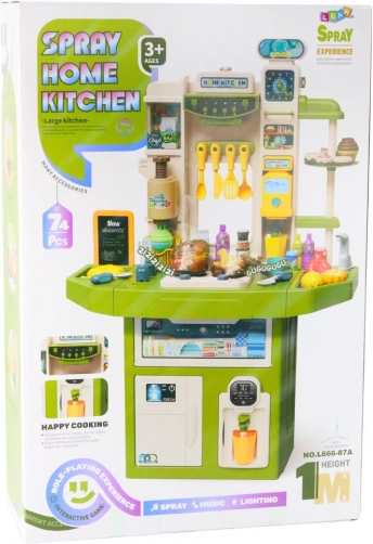 La grande cuisine pour enfants Spray Home Kitchen est le choix idéal pour les petits chefs. Avec 71 éléments, elle permet aux enfants de jouer librement, de façon créative et réaliste à cuisiner, pâtisser et servir des plats, y compris laver la vaisselle.